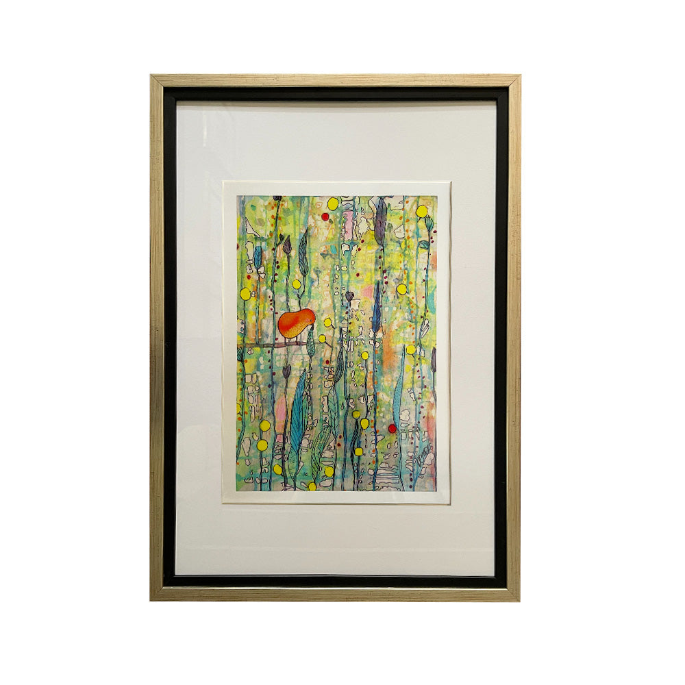 Ilustración de Sylvie Demers. Enmarcado con doble moldura A plata y A negro con paspartú blanco. Dimensiones: 54x77 cms.
