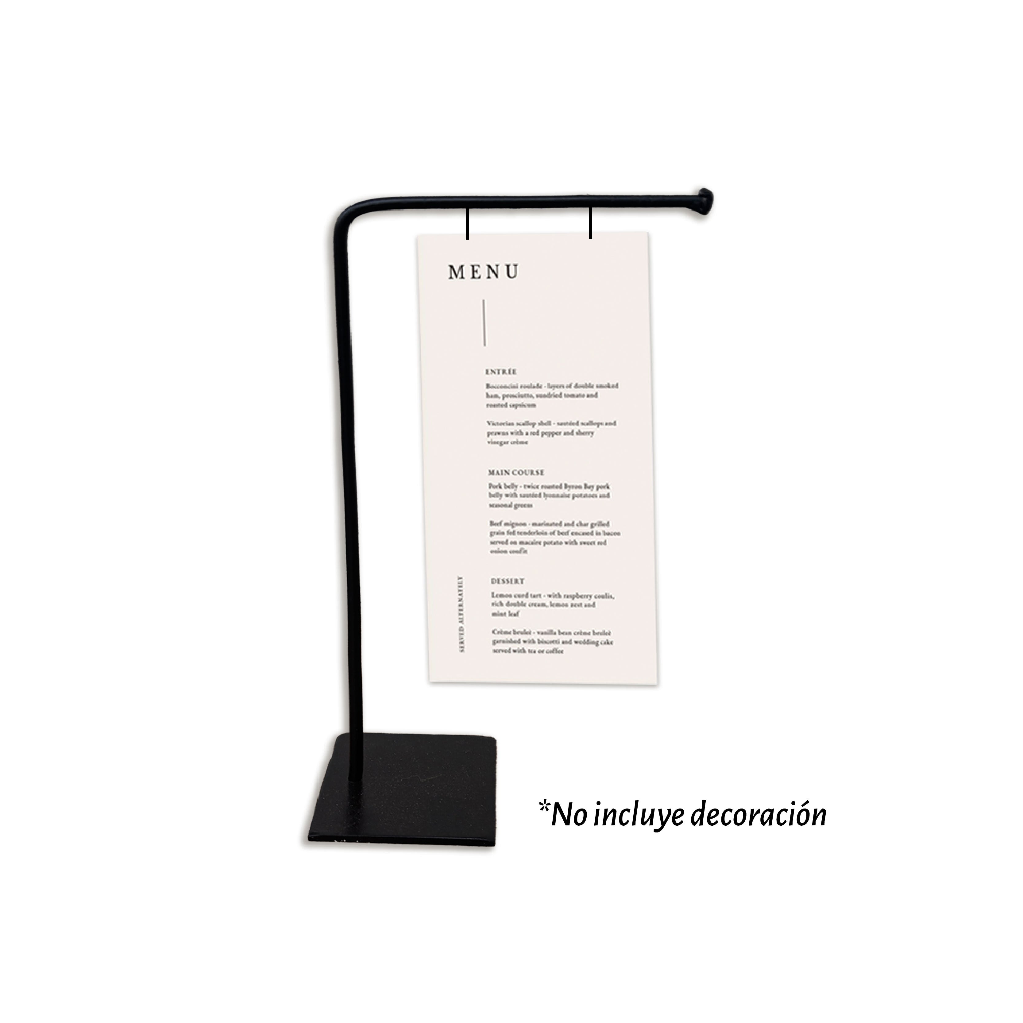 Pedestal Menú de fierro de 2 mm para poner como decoracion en mesas u otros espacios.