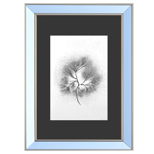 Ilustración de Antonia Larraín, enmarcada en marco espejo de 6 cm de ancho y paspartú negro. Dimensiones: 54 x 77 cms