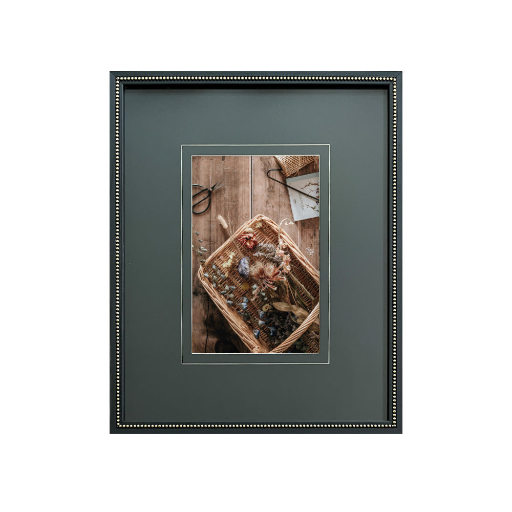 Cuadro de 53x43 cms. Ilustraciones digital con paspartú negro bisel. Enmarcado en marco negro perlita oro de 2 cms de frente.