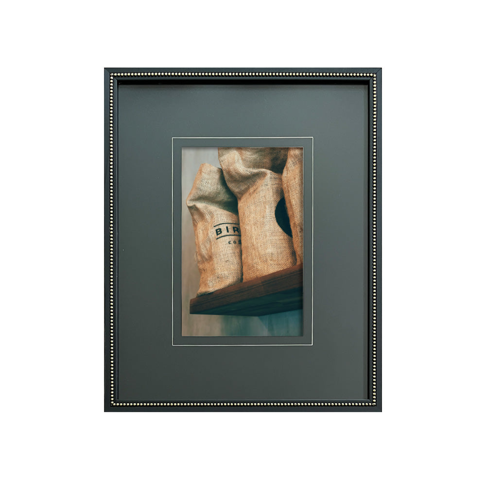 Cuadro de 53x43 cms. Ilustraciones digital con paspartú negro bisel. Enmarcado en marco negro perlita oro de 2 cms de frente.