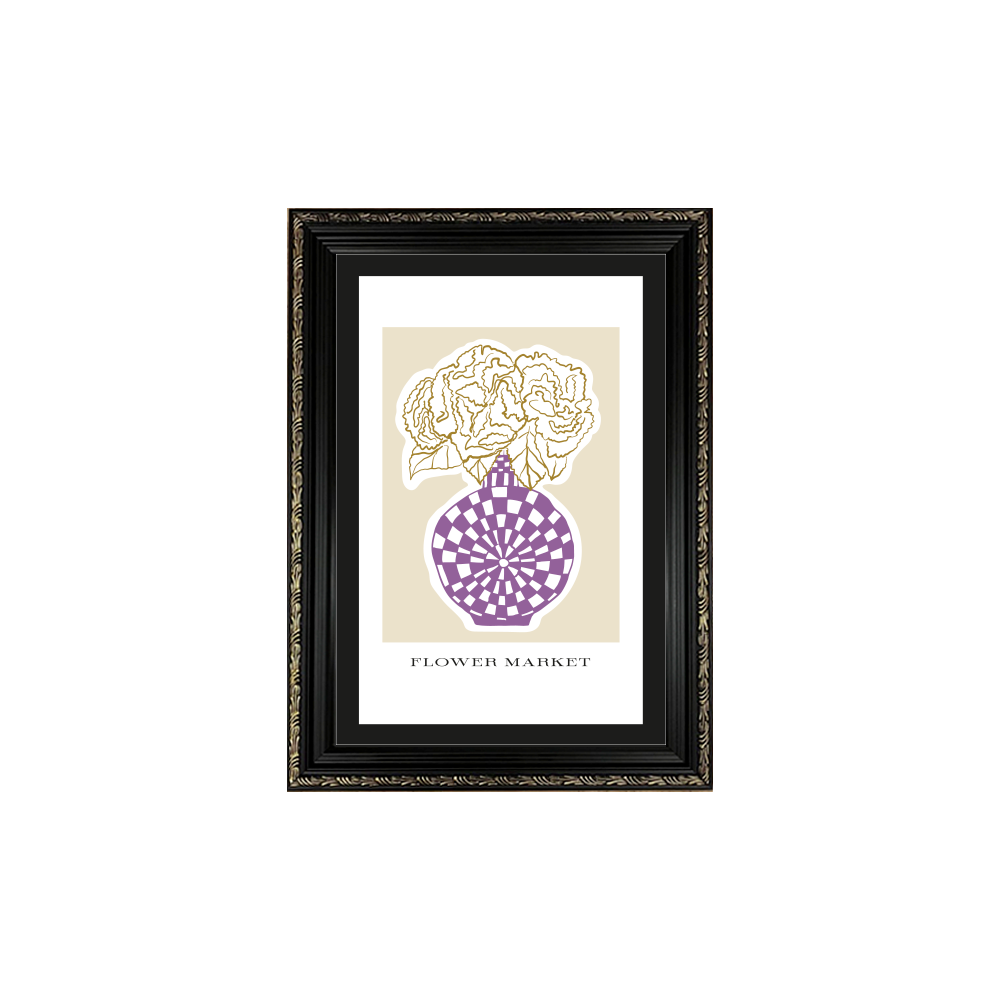 Cuadro de 36x51 cms. Ilustración digital realizada por Rosario Greene. Enmarcado directo en marco greca negro con espigas doradas de madera de 3,5 cms de frente .