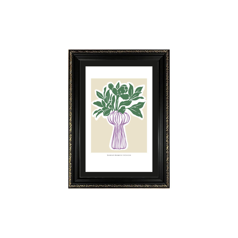 Cuadro de 36x51 cms. Ilustración digital realizada por Rosario Greene. Enmarcado directo en marco greca negro con espigas doradas de madera de 3,5 cms de frente .