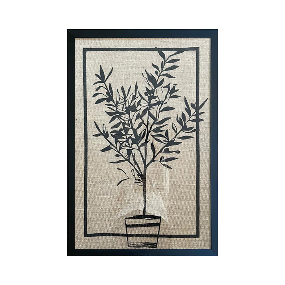 Cuadro de 93x61 cms. Serigrafía sobre arpillera. Enmarcada directo en marco negro de madera rústico de 3 cms de frente.