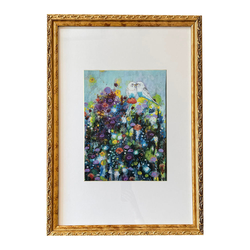 Sylvie Demers Greca Oro Pajaros Blanco Celeste