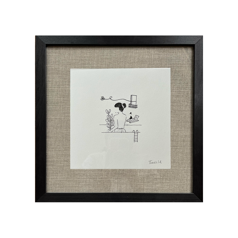 Ilustración por El Tomai. Enmarcada con fondo lino en marco A negro 33x33 cms.