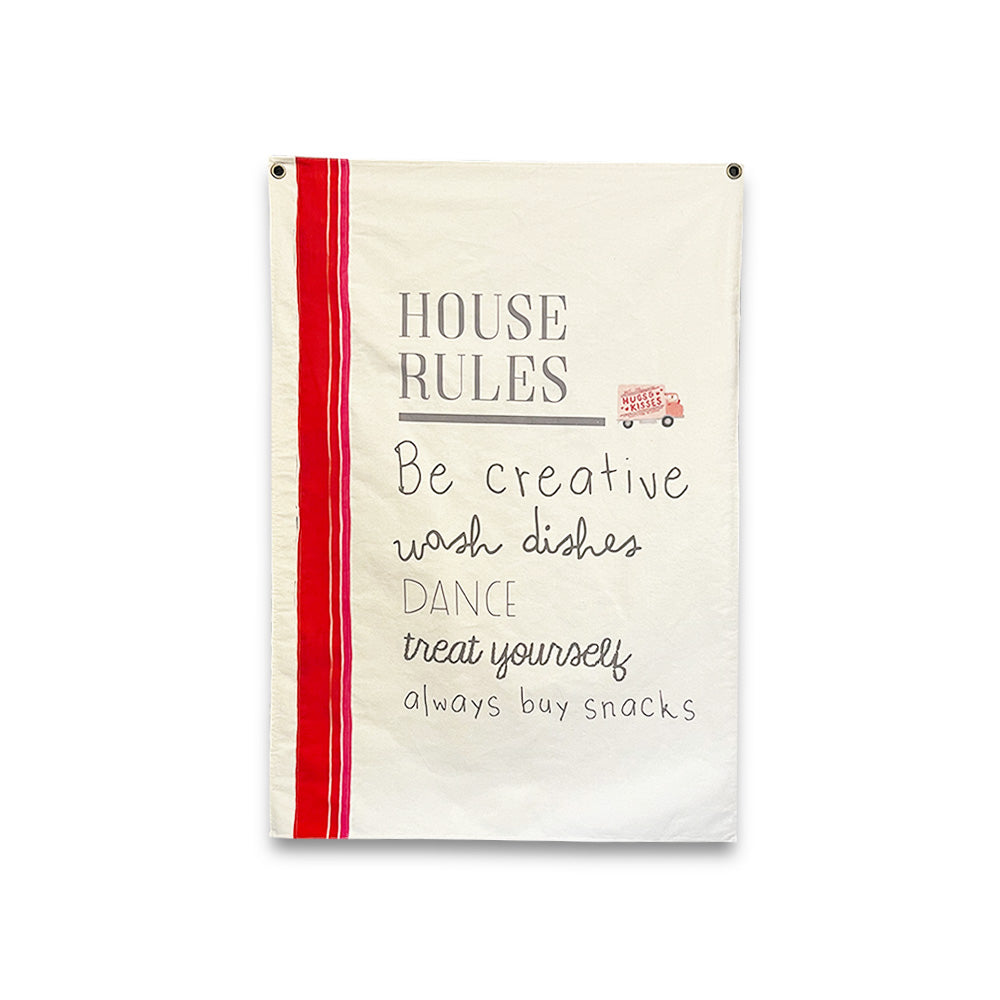 Wall de 121x85 cms. Lona gruesa color crudo impresa con ojetillos en las esquinas para colgar con huincha lateral de otro género . No se enmarcan. Se cuelgan directamente en el muro directo de los Ojetillos.